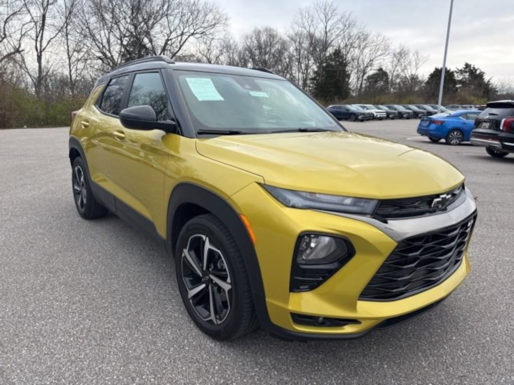 Home of the Lifetime Powertrain Protection! Proudly Serving: Cincinnati, Dayton, Lexington, Louisville, Hamilton, Mason, Sharonville, Beavercreek, Springdale, West Chester, Monroe, Fairfield, Kenwood, Newport, Covington, Fort Mitchell, Fort Thomas, Fort Wright, Independence, Florence, Union, Alexandria, Butler, Falmouth, Dry Ridge, and all of greater Cincinnati, Ohio, Indiana, and Northern Kentucky. 2023 Chevrolet TrailBlazer RS Nitro Yellow Metallic ANDROID AUTO/APPLE CARPLAY, BLUETOOTH, TOUCH TO START, TOUCH SCREEN, HEATED SEATS, BACK UP CAMERA, 1 Type-A & 1 Type-C USB Charging-Only Ports, 120-Volt Power Outlet, 8 Diagonal Color Touchscreen Display, Convenience Package, Driver & Front Passenger Illuminated Vanity Mirrors, Driver Confidence Package, Dual-Pane Panoramic Power Sunroof, Hands-Free Power Programmable Liftgate, Heated Steering Wheel, Inside Rear-View Auto-Dimming Mirror, Lane Change Alert w/Side Blind Zone Alert, Preferred Equipment Group 1RS, Rear Cross Traffic Alert, Rear Park Assist, Single-Zone Auto Climate Control Air Conditioning, Sun & Liftgate Package. CARFAX One-Owner. Clean CARFAX. Odometer is 11307 miles below market average! 29/33 City/Highway MPG