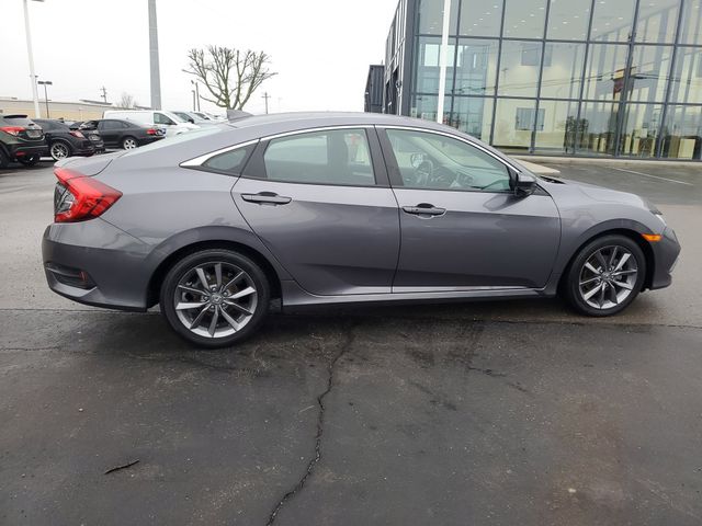 Modern Steel Metallic 2019 Honda Civic EX FWD CVT 1.5L I-4 DI DOHC Turbocharged *1 OWNER*, *LIFETIME POWERTRAIN WARRANTY*, Gray w/Leather Seat Trim, Apple CarPlay/Android Auto, Auto High-beam Headlights, Brake assist, Dual front impact airbags, Dual front side impact airbags, Exterior Parking Camera Rear, Forward collision: Collision Mitigation Braking System (CMBS) + FCW mitigation, Four wheel independent suspension, Fully automatic headlights, Heated Front Bucket Seats, Lane departure: Lane Keeping Assist System (LKAS) active, Overhead airbag, Power Moonroof, Remote keyless entry, Steering wheel mounted audio controls, Traction control.