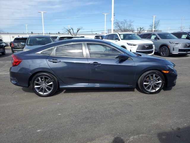 Cosmic Blue Metallic 2020 Honda Civic EX FWD CVT 1.5L I-4 DI DOHC Turbocharged *LIFETIME POWERTRAIN WARRANTY*, Gray w/Cloth Seat Trim, Adaptive Cruise Control: Adaptive Cruise Control (ACC) with Low-Speed Follow, Apple CarPlay/Android Auto, Auto High-beam Headlights, Brake assist, Electronic Stability Control, Exterior Parking Camera Rear, Forward collision: Collision Mitigation Braking System (CMBS) + FCW mitigation, Four wheel independent suspension, Heated Front Bucket Seats, Lane departure: Lane Keeping Assist System (LKAS) active, Power Moonroof, Radio: 180-Watt AM/FM/HD/SiriusXM Audio System, Traction control.