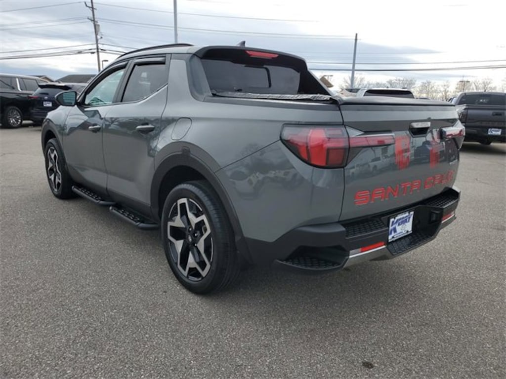Home of the Lifetime Powertrain Protection! Proudly Serving: Cincinnati, Dayton, Lexington, Louisville, Hamilton, Mason, Sharonville, Beavercreek, Springdale, West Chester, Monroe, Fairfield, Kenwood, Newport, Covington, Fort Mitchell, Fort Thomas, Fort Wright, Independence, Florence, Union, Alexandria, Butler, Falmouth, Dry Ridge, and all of greater Cincinnati, Ohio, Indiana, and Northern Kentucky. 2023 Hyundai Santa Cruz Limited Hampton Gray ANDROID AUTO/APPLE CARPLAY, BLUETOOTH, TOUCH SCREEN, HEATED SEATS, BACK UP CAMERA, LEATHER, REMOTE START, ALL WHEEL DRIVE, ONE OWNER. CARFAX One-Owner. Clean CARFAX. Certified. Odometer is 12971 miles below market average! 19/27 City/Highway MPG