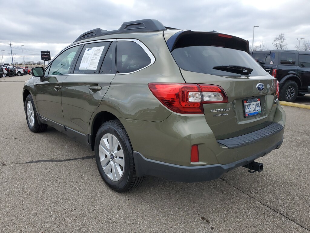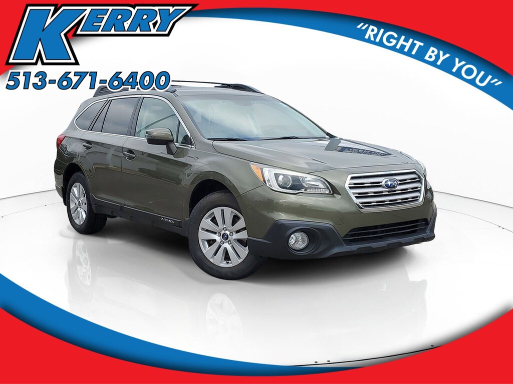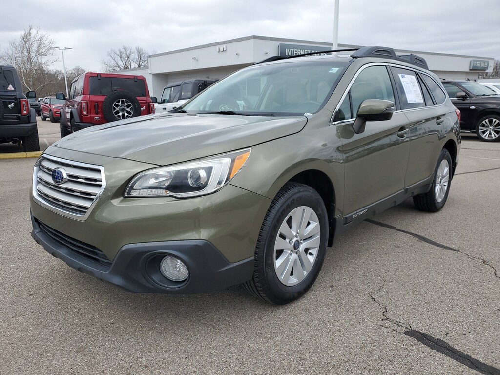 CARFAX One-Owner. Clean CARFAX. Wilderness Green Metallic 2015 Subaru Outback 2.5i Premium AWD CVT Lineartronic 2.5L 4-Cylinder DOHC 16V Outback 2.5i Premium, 4D Sport Utility, 2.5L 4-Cylinder DOHC 16V, CVT Lineartronic, AWD, Wilderness Green Metallic, Warm Ivory Cloth, 4-Wheel Disc Brakes, 6 Speakers, ABS brakes, Adaptive Cruise Control, Aha Infotainment, Air Conditioning, Alloy wheels, AM/FM radio: SiriusXM, Anti-whiplash front head restraints, Automatic temperature control, Brake assist, CD player, Dual front impact airbags, Dual front side impact airbags, Electronic Stability Control, Exterior Parking Camera Rear, Four wheel independent suspension, Front anti-roll bar, Front dual zone A/C, Front fog lights, Fully automatic headlights, Lane Departure Warning System, Low tire pressure warning, Moonroof & Pwr Gate & Navi & EyeSight & Blind Spot, Occupant sensing airbag, Overhead airbag, Panic alarm, Power Moonroof Package, Power Rr Gate w/ Automatic Close & Height Memory, Pre-Collision System, Radio: AM/FM Stereo HD Radio & Navigation System, Rear anti-roll bar, Rear window defroster, Speed control, Speed-sensing steering, Traction control.